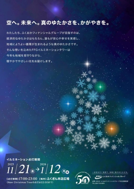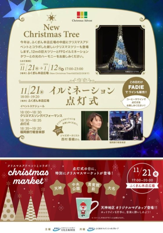 福岡市中央区天神にある「ふくぎん本店広場」のイルミネーション点灯式で歌います。